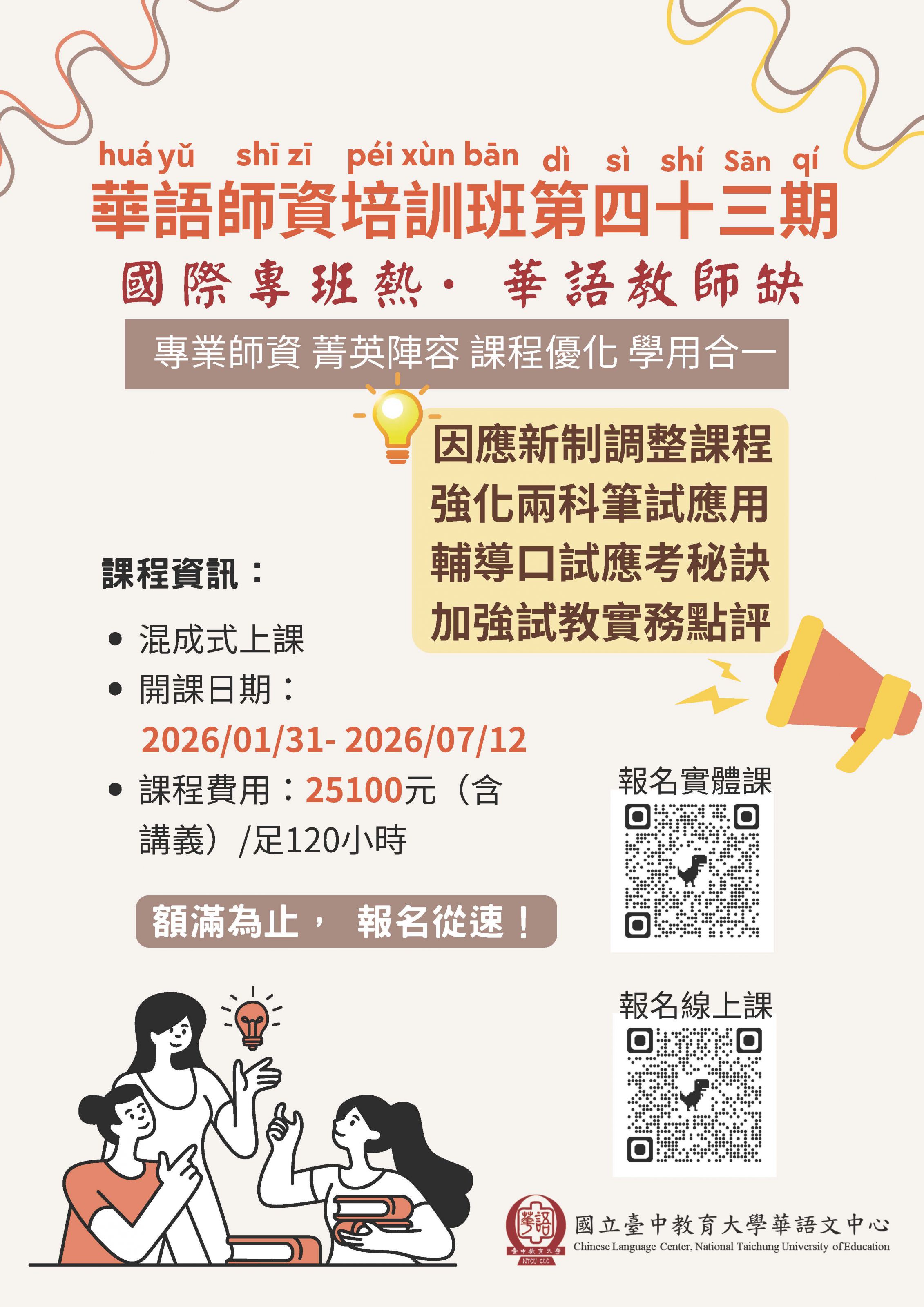 第43期華語師培班-混成式上課~全面安排考科課程~熱烈招生中~