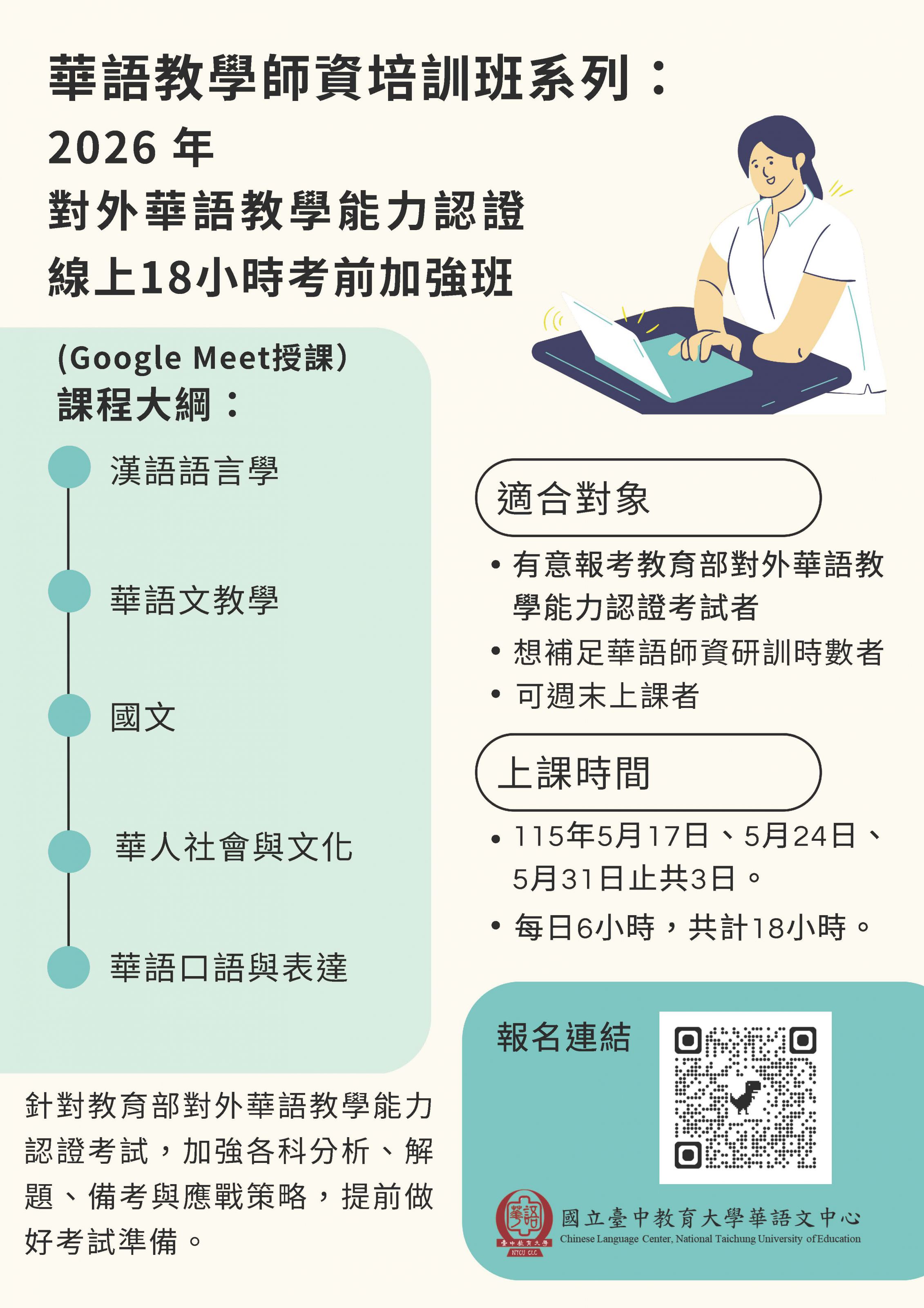 2026年對外華語教學能力認證線上18小時考前加強班~考前衝刺歡迎報名